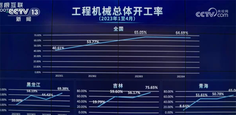 这个大屏幕反映的是全国挖掘机的开工环境,相关担任人告诉记者,“挖掘机指数”显示出本年我国工程机械行业起头呈现回暖迹象。4月份,全国工程机械总体开工率为64。69%,环比3月根基持平。12个省(区、市)创下本年以来最好成就。